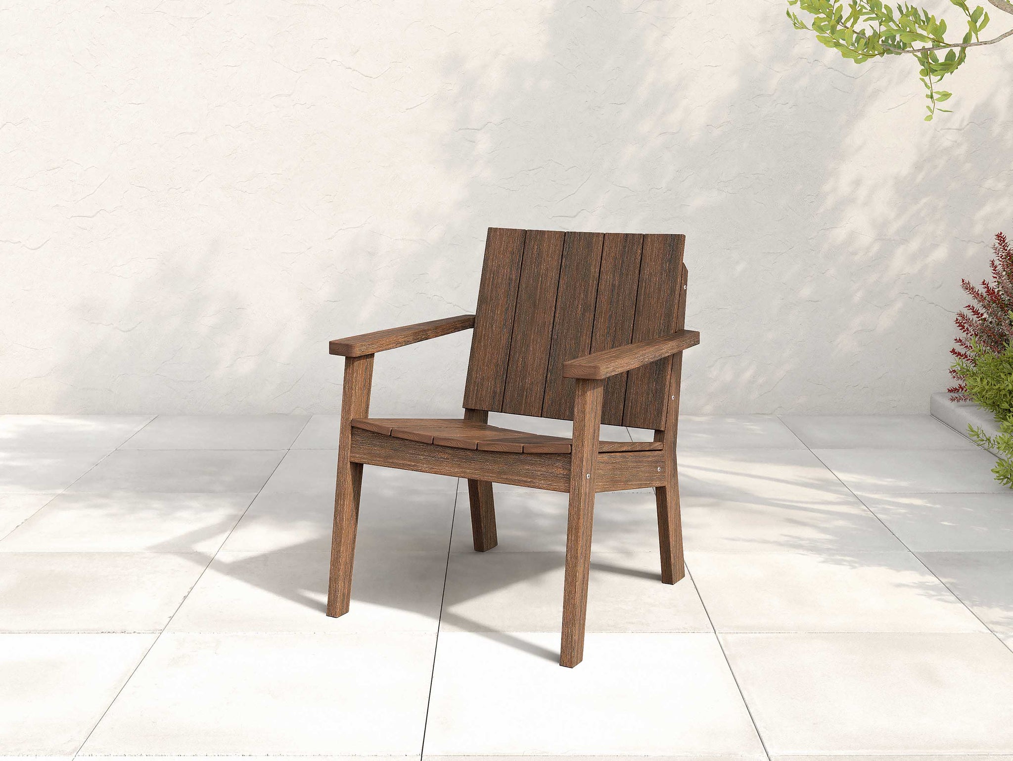 Turning any area into a place to entertain, the Ashland Chat Chair features an upright, generous seat, designed for casual outdoor conversation. This all-weather outdoor chair is made from durable Tangent Sustainable Lumber, the most luxurious HDPE lumber available.